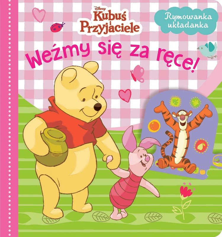 „Weźmy się za ręce” to przede wszystkim ciepły rymowany wiersz o zabawie i radosnym spędzaniu czasu w gronie przyjaciół, wśród których Kubuś spotyka Kłapouchego, Tygryska, Prosiaczka i Królika. Jego refren „Weźmy się za ręce, mili przyjaciele, żeby przeżyć razem chwil cudownych wiele!” wprowadzi małego czytelnika w dobry nastrój, którego zadaniem jest dopasowanie puzzla do ilustracji. Uroczo zilustrowany wierszyk z sympatycznymi bohaterami, znanymi z animacji Disneya, zachęci malca do słuchania ze zrozumieniem, a układanie i dopasowywanie puzzli to idealne ćwiczenie dla małych rączek. Dziecko rozwija dzięki niemu sprawność manualną, spostrzegawczość, pamięć wzrokową oraz umiejętność wyodrębnienia elementów o określonym kształcie z tła i układania ich w logiczny ciąg.