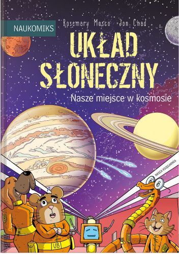 Przygotuj się do badania głębin oceanów, dalekiego kosmosu i wszystkiego po drodze! Krwiożercze rekiny, skomplikowane roboty, upierzone welociraptory i dużo więcej czeka na ciebie w NAUKOMIKSACH! Sięgnij do gwiazd! Wybierz się w głąb Układu Słonecznego, gdzie nie dotarło jeszcze żadne dziecko! Poznaj dokładnie najbliższych sąsiadów Ziemi – Wenus z jej kwaśnymi ulewami, Saturna opasanego pierścieniami lodu i sam środek tego wszystkiego, czyli Słońce. Od czasów pierwszych astronomów do zrobotyzowanych misji NASA na Marsa – przestrzeń kosmiczna nie przestaje fascynować ludzi. Każdego dnia dowiadujemy się czegoś nowego o Układzie Słonecznym. Czy wiesz, że powstał z obłoku kosmicznego pyłu? Że Wielka Czerwona Plama na Jowiszu jest w istocie ogromną burzą? Dołącz do Sary, Jill i ich dzielnych zwierzaków, by wziąć udział w wyprawie, dzięki której poznasz zdumiewające obiekty Układu Słonecznego – i nie tylko! Rosemary Mosco jest popularyzatorką nauki i rysowniczką, która z ogromnym zaangażowaniem dzieli się z czytelnikami swoim uwielbieniem dla świata przyrody. Sama wymyśla i rysuje kolejne odsłony serii internetowych historyjek obrazkowych „Bird and Moon”, a razem z Maris Wicks stworzyła komiks internetowy poświęcony przyrodzie miejskiej – „Your Wild City”. Gdyby mogła polecieć do dowolnego miejsca w Układzie Słonecznym, wybrałaby Europę, jeden z księżyców Jowisza.